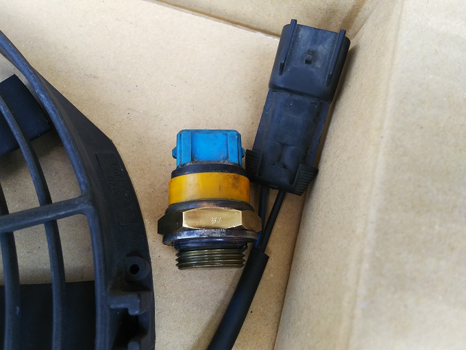 ちょっと写真では分かり辛いですが、「97」と刻印されており、水温が97℃になったら冷却ファンが回り始め、おそらく92℃になったら停止するようになっていました。