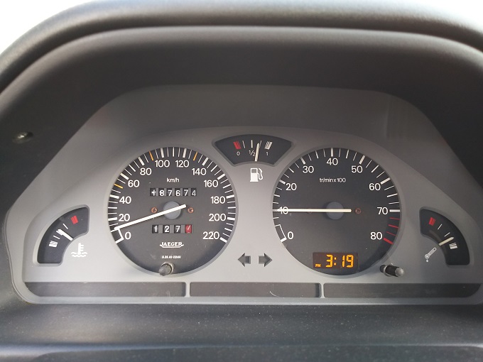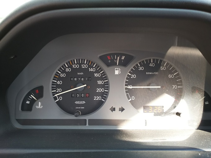 写真:純正メーター水温計のこの位置でファン停止(水温はおそらく約87℃)