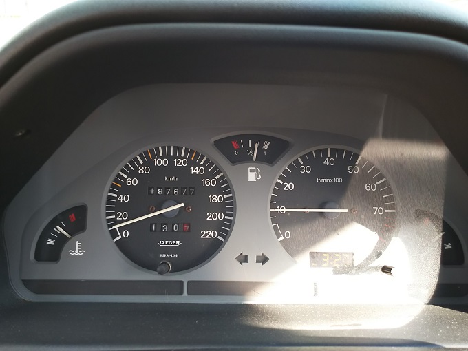 写真:純正メーター水温計のこの位置でファン始動(水温はおそらく約92℃)