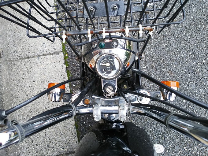 そんなこんなで、まず手始めに、モンキー純正品が取り付けられていた前カゴを撤去&処分しました。