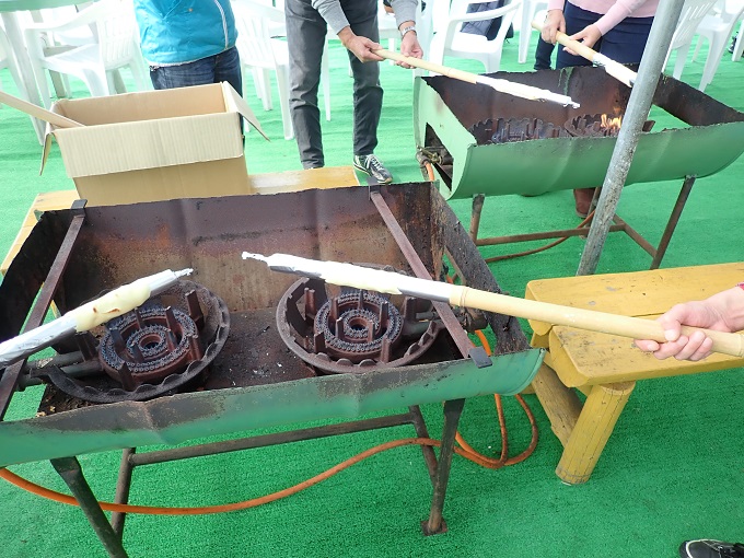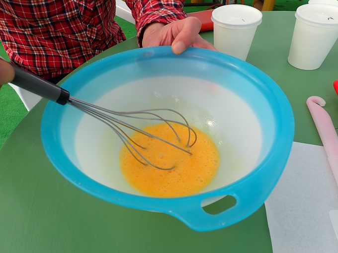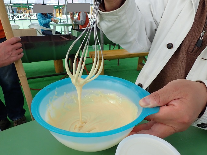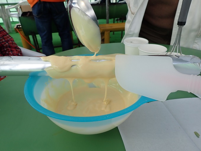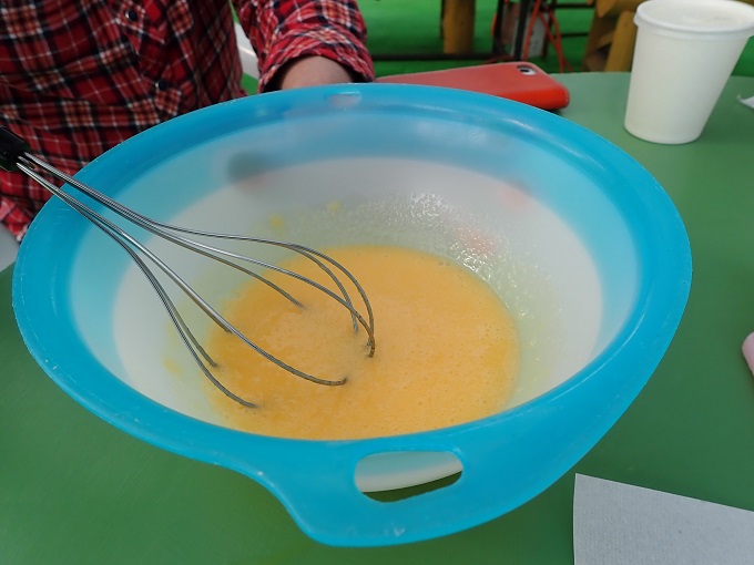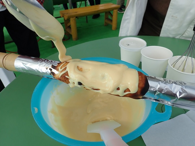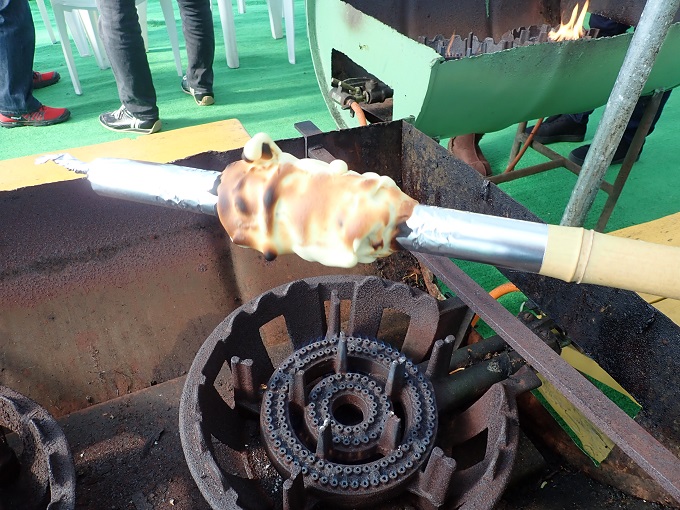 今回のメイン企画でもあるバウムクーヘン作りですが、受付&決済をしたり写真を撮ったりでキチンと説明を聞けていないので、少し違っている部分もあるかもしれませんが、バウムクーヘン作りの工程を中心ご紹介します。