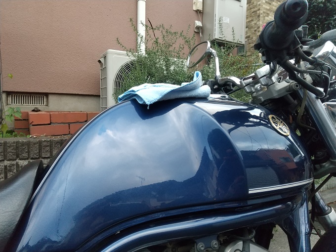 27年前のバイクなのでピカピカにはなりませんが、お空が映るレベルにはなりました。