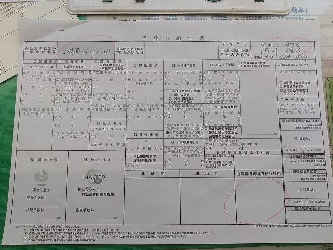 この受付で「軽自動車届出済証」を出すと、用紙が2枚渡されます。