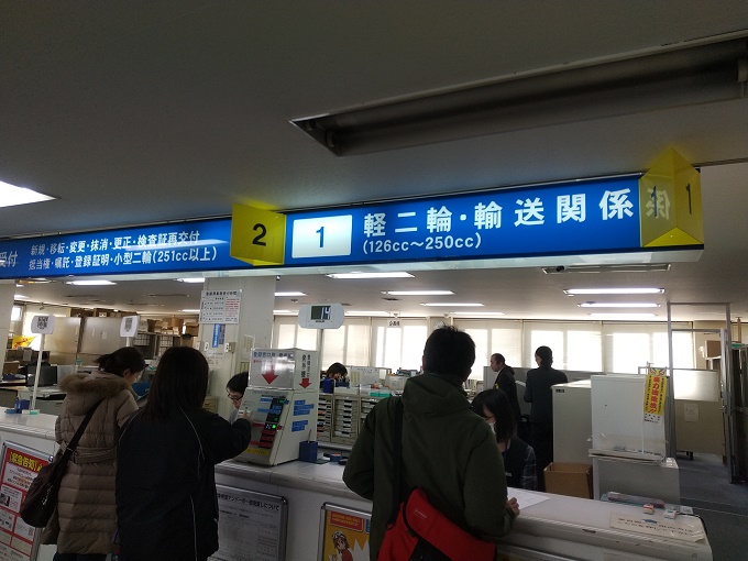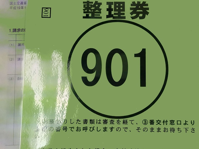 返納確認印をもらったら、「手数料納付書」と「申請書(軽二輪第5号様式)」を再び受付に提出し、整理券を受け取ります。