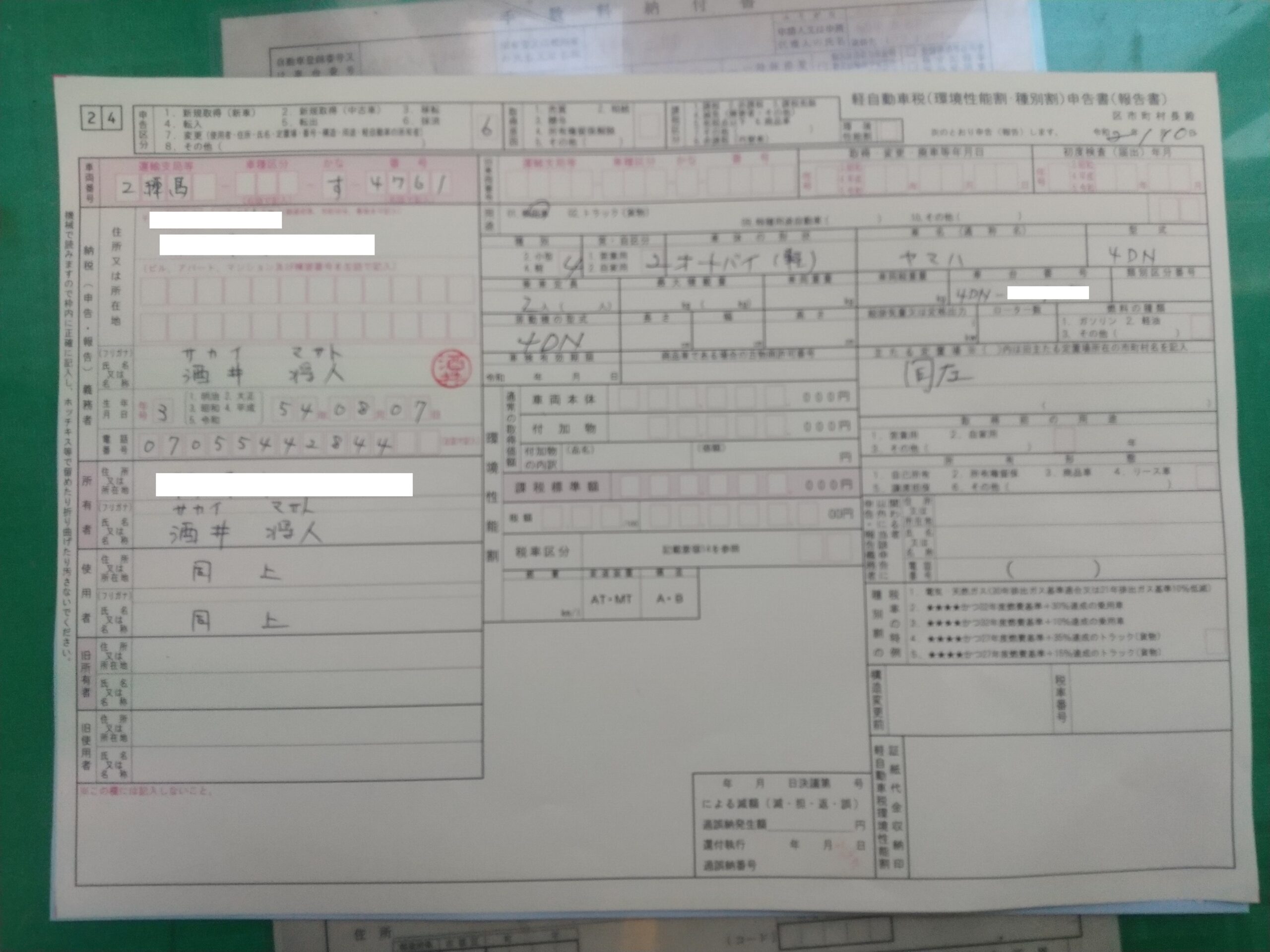 「軽自動車税申告書」を提出して終了です。
