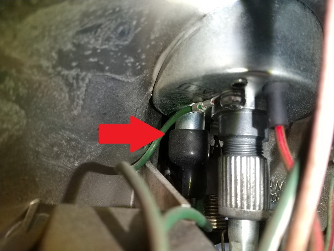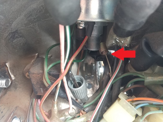 メーターを固定しているスプリング(赤矢印)を外しました。