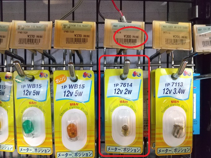 多種多様な品揃えの中に、お目当ての12V2Wの電球がありました。
