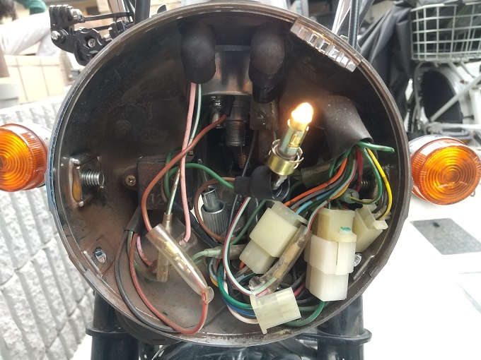 ミニバイクのメーター球なんて交換したことがないので、手探りで進めていきます。