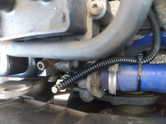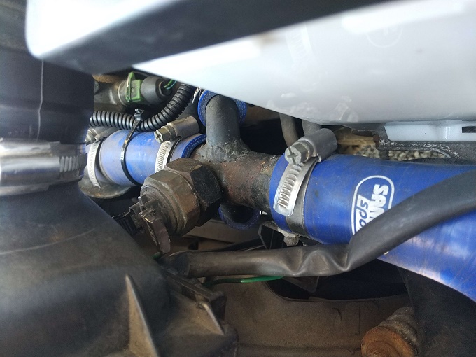 一方、水温はこの手作り感のあるアッパーホース辺りから取り出すのかなぁ…