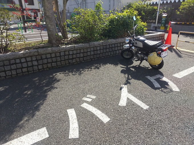 人混みを避けるため、朝イチの時間を狙って行ったので、バイク置き場もガラガラです。