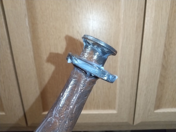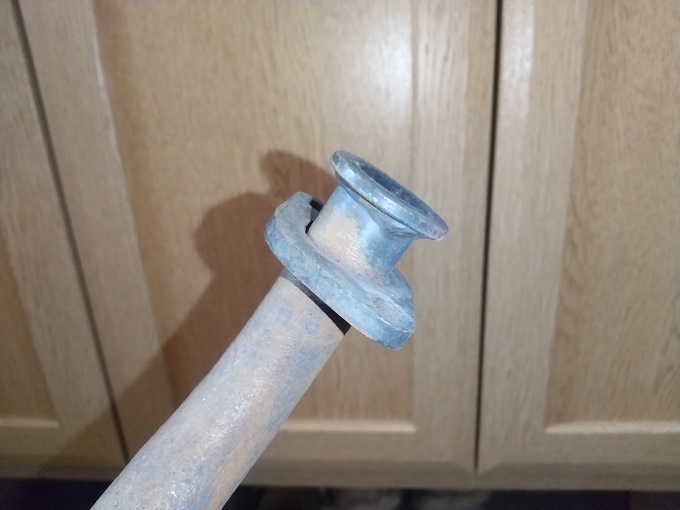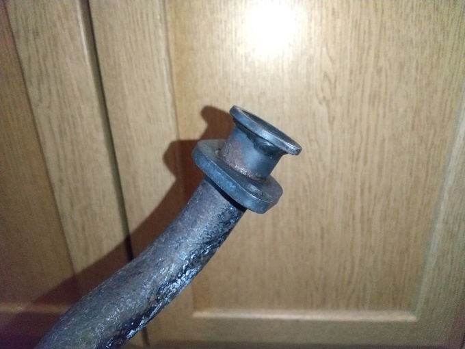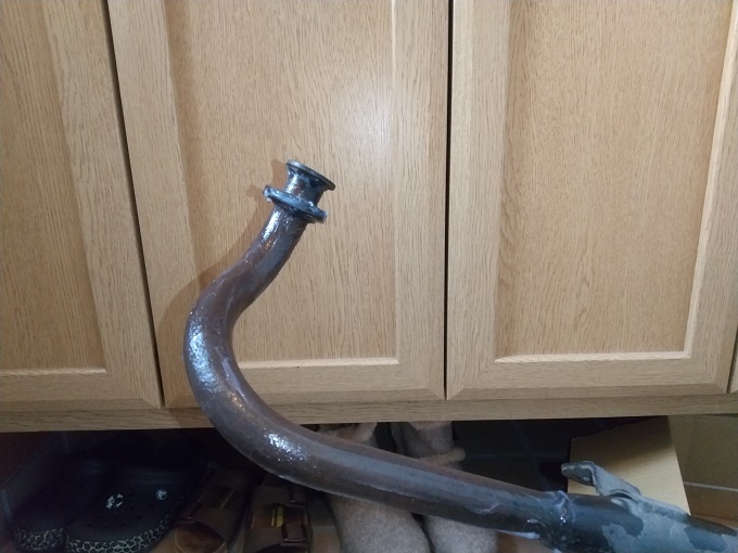この後、ペーパーでもうひと削りいきたいところですが、このエキパイはお世辞にも肉厚とはいえないので、これ以上錆を削るとヤバそうな予感が…。