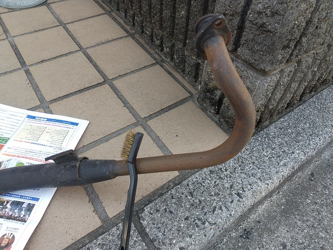 まずはブラシで表面の錆を可能な限り削ぎ落します。