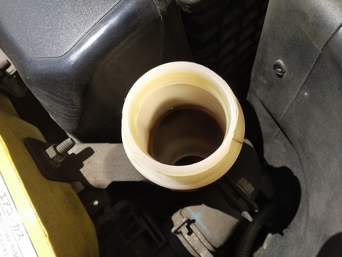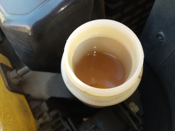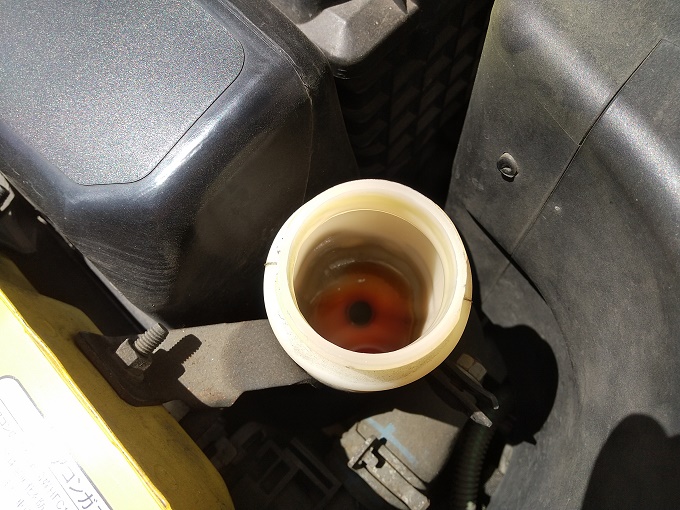 まず、パワステフルード(パワステオイル)は1年前に交換しているので、汚れていません。