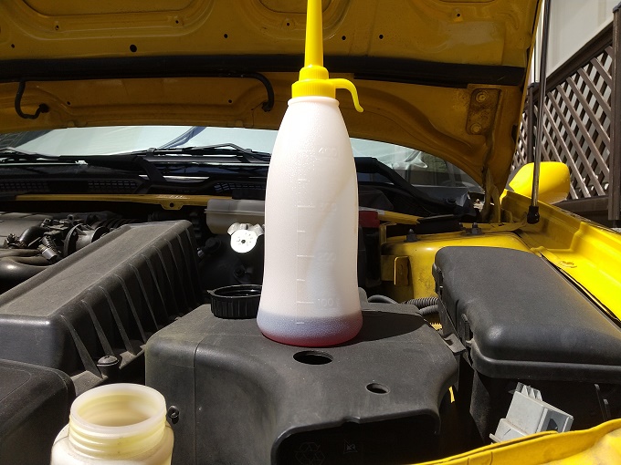 と、そんな意味不明な余談はさておき、まずは内容量40mlよりも少し多めにパワステフルードを抜きまして、