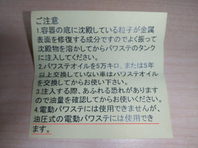 ほぼ間違いなくパワステポンプの故障なので、よくある漏れ止め剤ではなく、パワステポンプに作用する添加剤を探したところ…