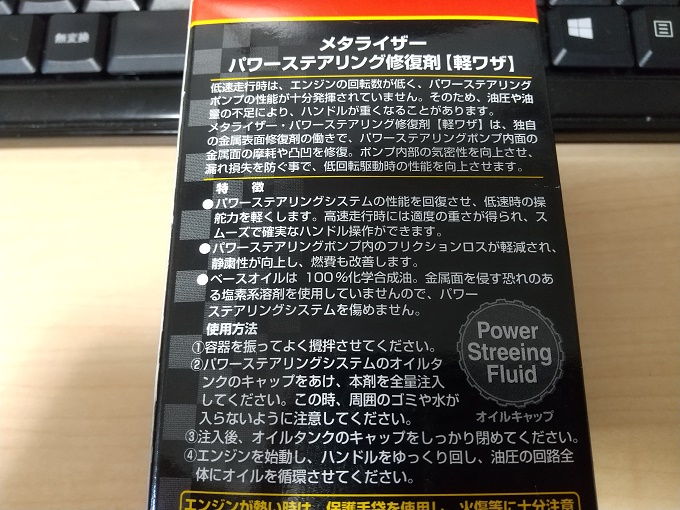 メタライザー(METARIZER CORPORATION)というメーカーの「軽ワザ パワーステアリング修復剤 40ml」という商品です。