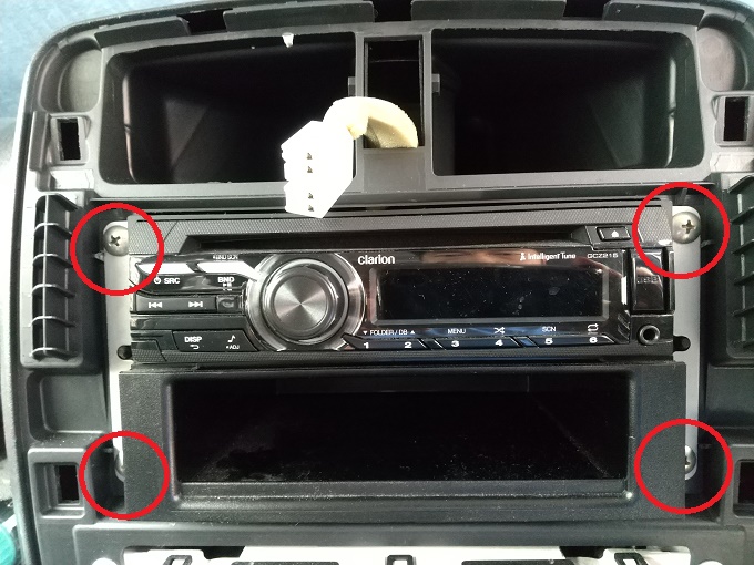 赤丸のところのビス4本を外せば、ヘッドユニットがゴッソリ抜けますので、あとは新旧ヘッドユニットを交換するだけです。