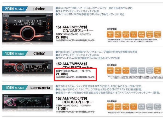 今付いているのは、スズキ純正オプション品の「clarion GCZ215」というモデルのようです。