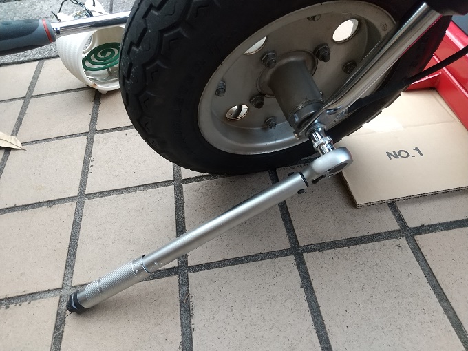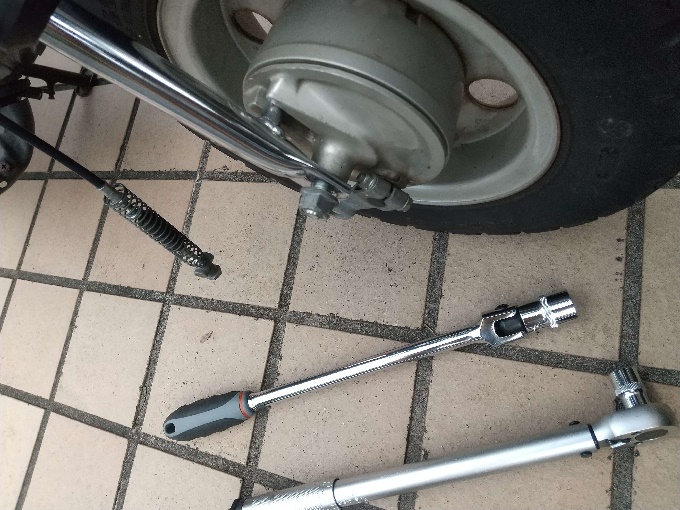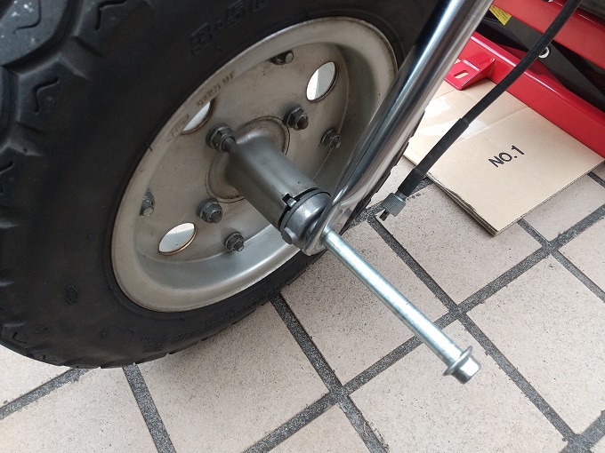 車体を下ろしてから規定トルクでアクスルシャフトを締めれば完了です。