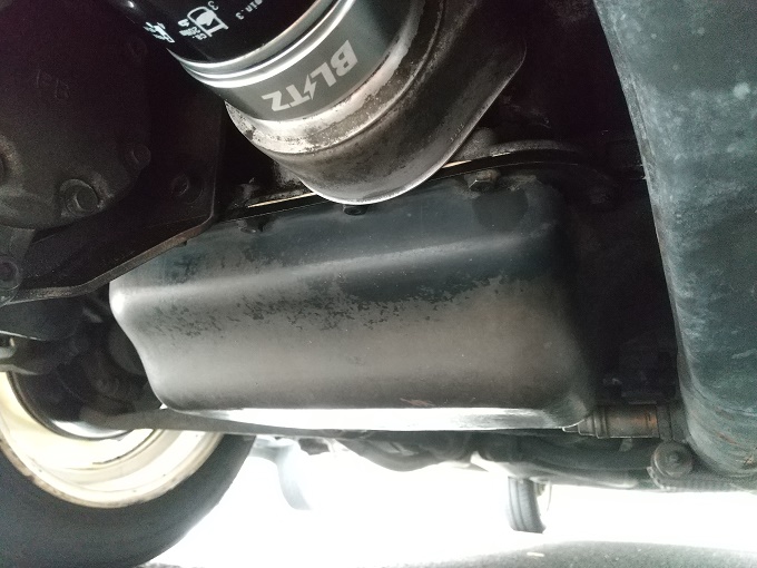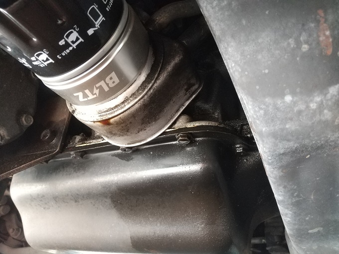 自粛期間中の水漏れ時に発覚したオイルパン付近からのオイル漏れ。