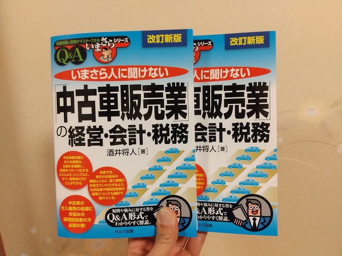 今年の9月に発行された『改訂新版_いまさら人に聞けない「中古車販売業」の経営・会計・税務』が、早くも重版となりました。 重版時には出版社から著者贈答分として2冊いただける契約となっているため、 手元に届いた2冊は、先着2 […]