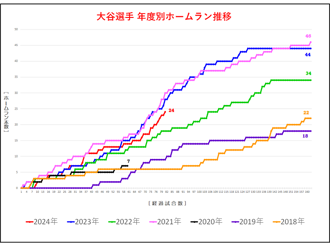 大谷選手のホームランペースをグラフ化しておりますと、6月の月間本塁打12本という数字にやはり目がいきます。 ✅大谷選手のデビューからのホームランペース比較 ✅大谷選手とジャッジ選手のホームランペース比較 ここで気 […]