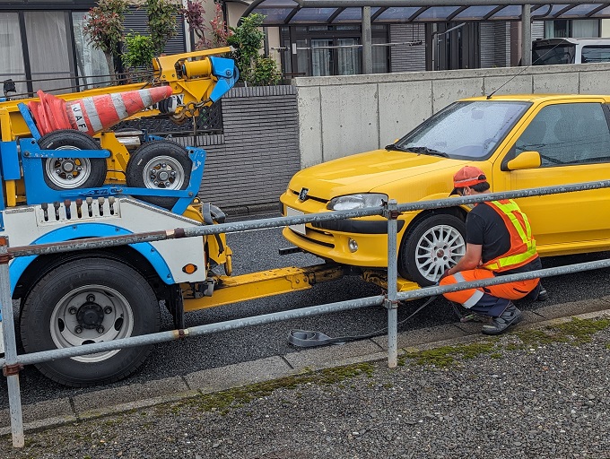 プジョー106S16 ドライブシャフトのブーツ破れでJAFレッカー入院(6ヶ月ぶりの復活へ!)
