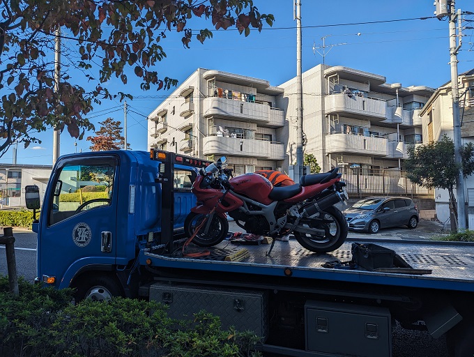 初期型SV650S 発火寸前!?白煙吹いてレッカー移動~JAFはバイクもロードサービスOK~(検索)SV400S