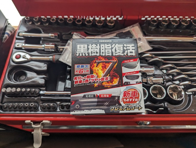 前回の続きです。 1回目のコーティング後の現状がコチラ。 これでも、一番最初の状態よりは… かなり良くなった方だと思います。 ここに残り4mlの黒樹脂復活剤を塗っていきます。 その結果… ずいぶんとゴールに近づいてき […]
