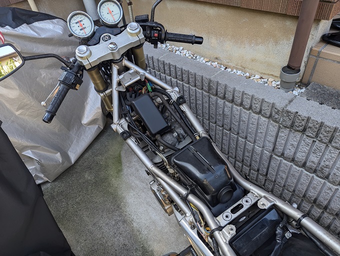 昨日、燃料コックからのガソリン漏れが発覚したグース君。 本日は休日だったのですが、長時間放置する訳にはいかない状況だったので、早起きして対処することに。 一晩で漏れたガソリンの跡。 気化した分も考慮すると結構な量ですね。 […]