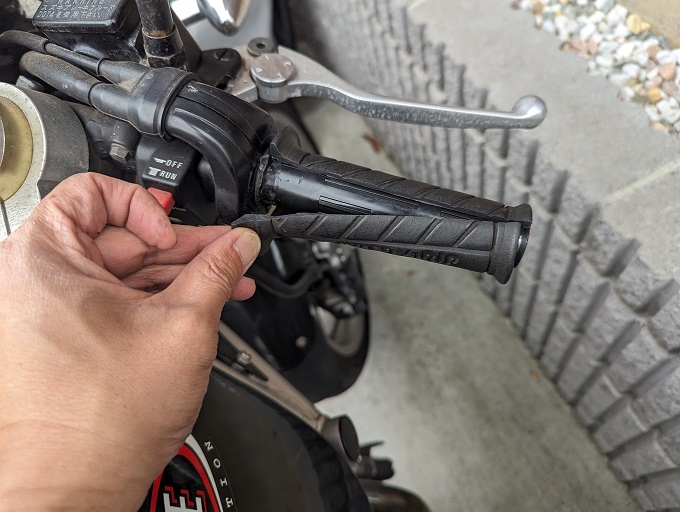 スズキグース350 グリップ交換(バーエンドのゴムがハンドル内に残った場合の対処法)