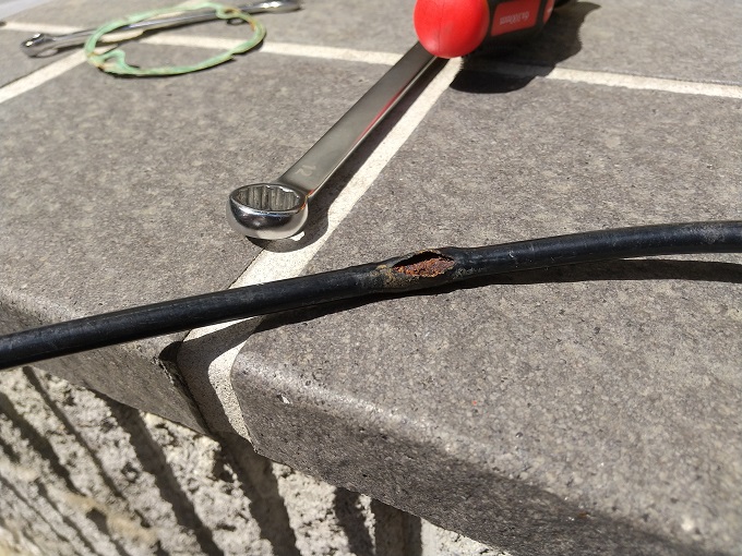12Vモンキー ブレーキワイヤー交換→試走 ~ちょっとした亀裂・錆びにも要注意~