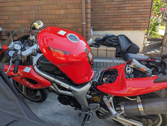 初期型SV650S[前期・逆車AV111] カウル割れ補修【その4:バイクのステッカー剥がしには家庭用ドライヤー!】(検索)VP52A・デカール
