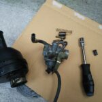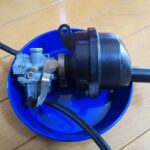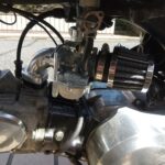 リアサス交換、フロントフォーク交換、クラッチプレート交換などなど、くたびれた箇所をリフレッシュしつつ、中古で購入した国産エンジンをオーバーホール&ボアアップして搭載しています。